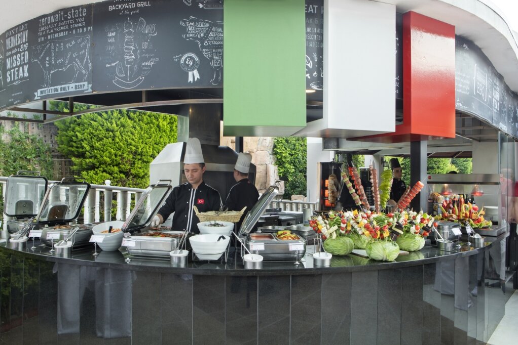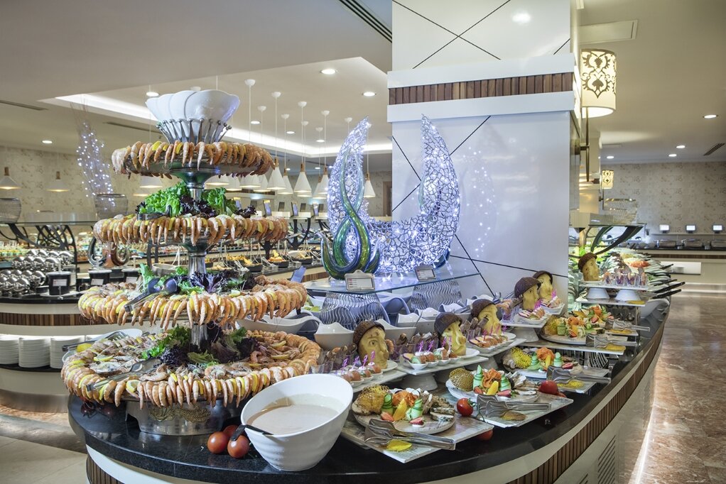 Her sabah taze sebzeler, doğal ürünler ve hamur işlerinden oluşan lezzetli bir kahvaltı açık büfe olarak sunuluyor. Öğle ve akşam yemekleri için Türk ve dünya mutfaklarından çeşitli tatlar özenle hazırlanıyor. Tesiste ayrıca Uzak Doğu, Meksika, İtalyan, BBQ, Osmanlı ve Akdeniz mutfaklarından tatların hazırlandığı a la carte restoranlar mevcut.
