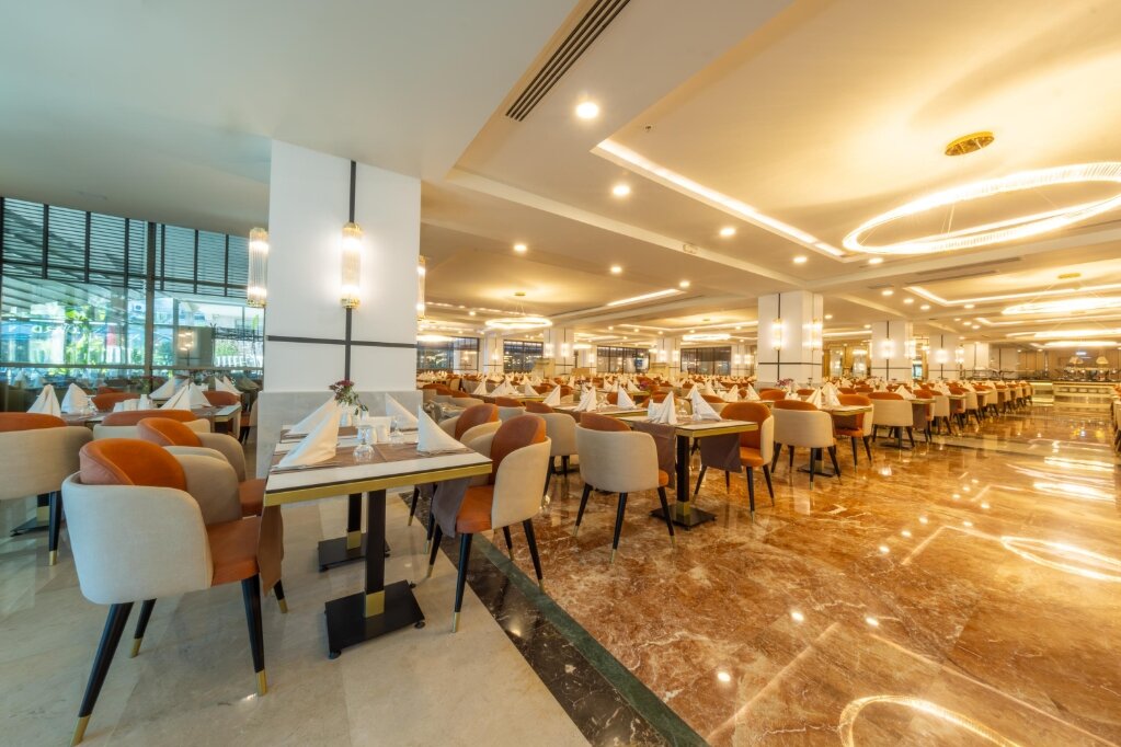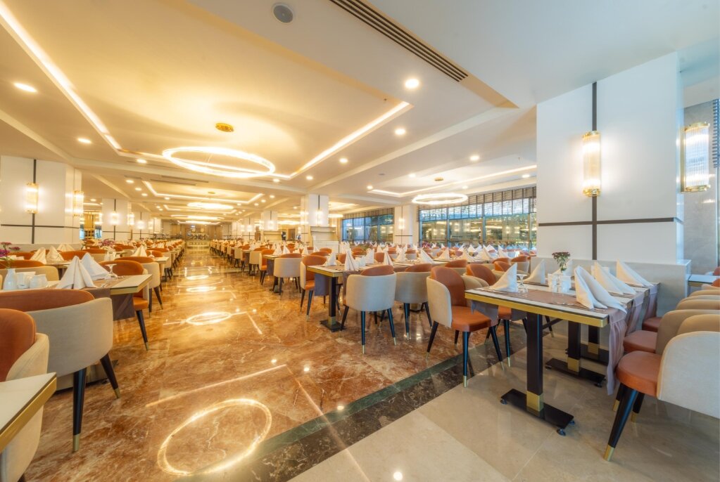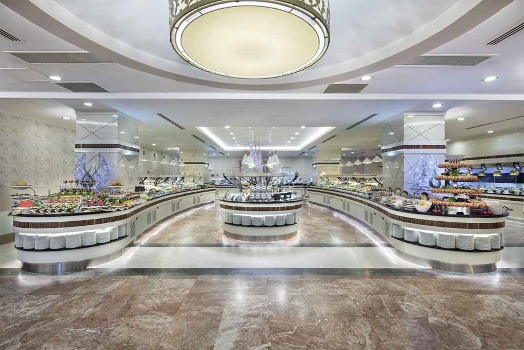 Sabah, öğle ve akşam açık büfe yemekler ücretsiz. Tesisin belirlemiş olduğu markalar dahilinde bazı yerli alkollü ve alkolsüz içecekler 24 saat ücretsiz. Minibar her gün soft içeceklerle dolduruluyor.